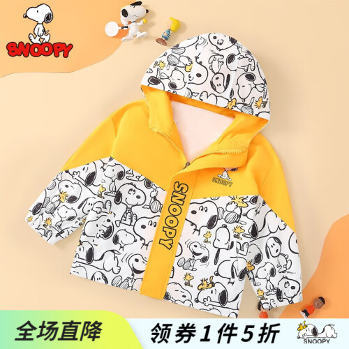 这款SNOOPY史努比 儿童梭织连帽外套,连帽设计,防风保暖,卡通烫画,萌趣潮酷,两款两色可选~