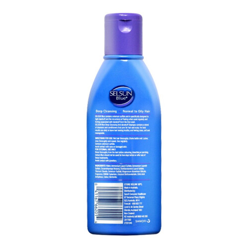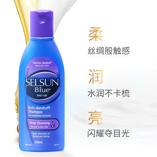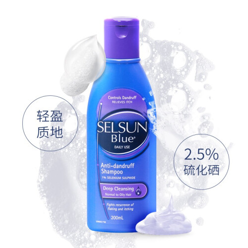 Selsun Blue 由世界著名药厂美国雅培公司出品,配方内含有美国医生首选推崇的Selenium Sulfide成份, Selenium Sulfide 能有效抑制造成头屑主要元凶之一的芽孢菌M.ovalis生长,常用能彻底去头屑、止头痒。更有氨基酸、小麦、大豆蛋白、维他命B5等多种护发成份,可以滋养秀发,改善头皮干痒、发梢分叉等情况。坚持使用,可有效应对日常头屑,预防头皮脂溢性皮炎,使头发更加健康、柔顺和易于梳理。此产品在美国享有专利权U.S.PatentNo.5015415。