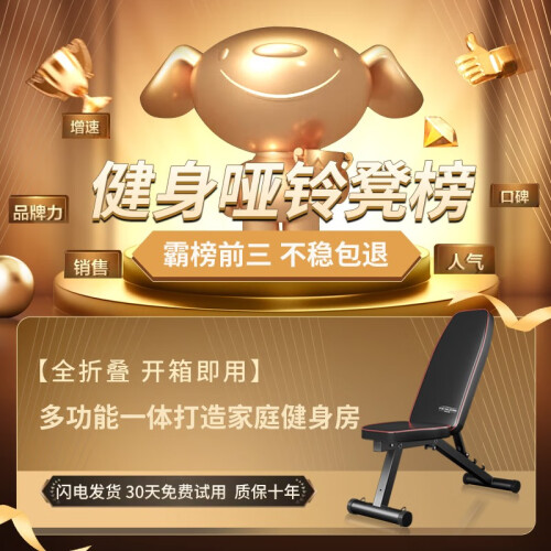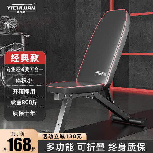 yiCHiJiAN 易持健 折叠多功能健身凳 五合一经典款,可作为平板凳、仰卧板、哑铃凳、卧推凳、牧师凳、飞鸟凳凳,五档调节,满足不同身高人群。加粗龙骨主架,三重加粗方管支架,加粗方管,强力支撑,高强承重安全健身。
