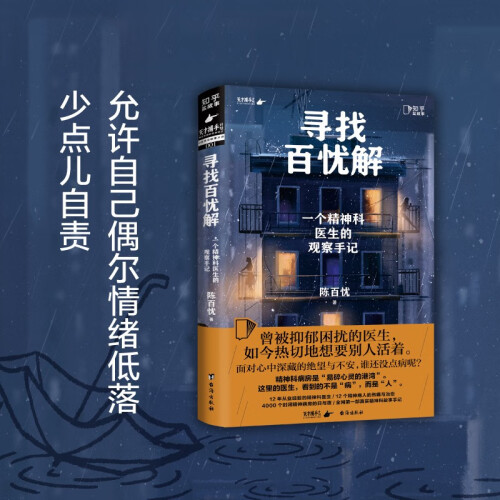 这本图书是知乎大v精神科医生陈百忧的真实诊疗手记,通过记录12 位精神病患者人生中最癫狂也最暗淡的一面,4000天治疗与陪伴,修复支离破碎的人生。在书中我们也许会找寻到自己的影子,也许通过这本小书能够重拾对生活的关注和对自己情绪的关注。