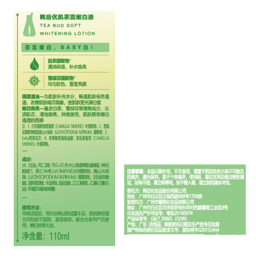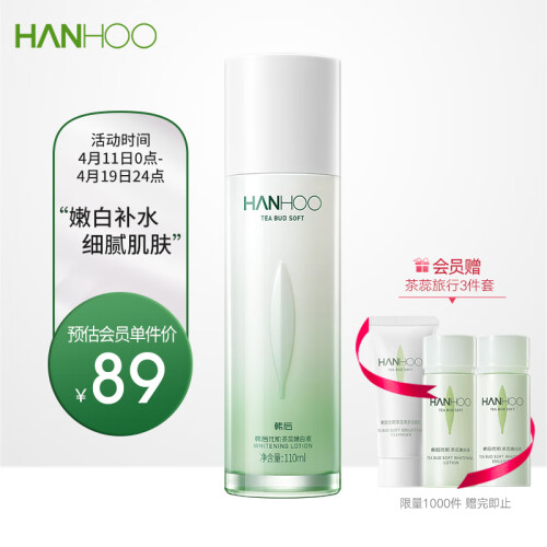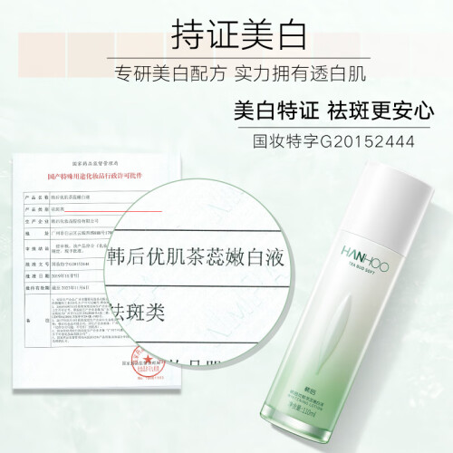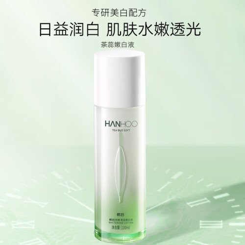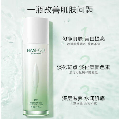 韩后(Hanhoo)推出的这款爽肤水,添加白茶和雪绒花等成分,可改善干燥缺水、暗黄粗糙等问题,帮助肌肤补充水分、滋润保湿的同时,提亮肤色,使皮肤细腻且富有光泽。浓郁精华液质地,清爽易吸收。可搭配同系列产品使用。