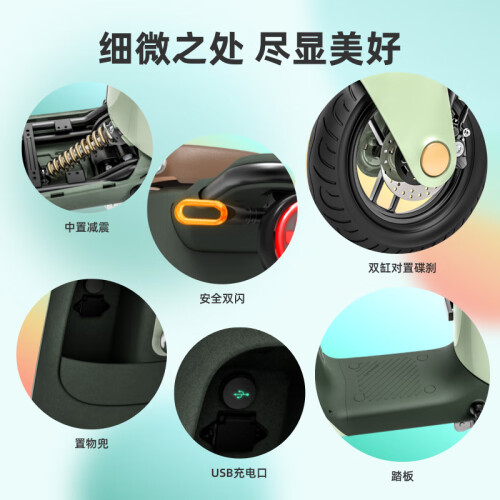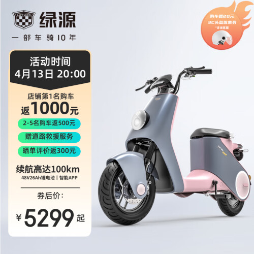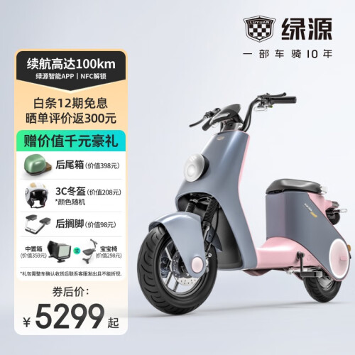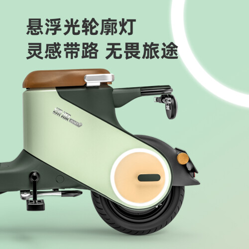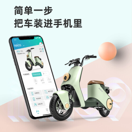 LUYUAN 绿源 电动自行车 INNO9,悬浮光轮廓灯,灵感带路无畏旅途,光轮廓灯带起加速感,双侧灯光行驶安全感UP UP。自动感应大灯,超敏双光线感应,每一束光都精准细腻。悬浮炫彩仪表,动态、灯光神同步。连接绿源智能APP,即可完成启动车辆、键寻车、开启鞍座、定位车辆、记录、骑行等系列操作,线上玩转各种操控。通过手机分享车辆使用权限,家人急用车,无需钥匙,同样操控。搭载48V26Ah超长续航锂电池,续航更久的新国标电动车。刹车距离缩短30%,寿命延长5倍。石墨烯钢丝轮胎,加强防刺金钟罩,低阻跑更远,耐磨更抗扎。人体工学设计,真实模拟各状态,骑行场景,动态锁定舒适度。高密度原生定型海绵,舒适回弹,久坐不累,不塌陷。
