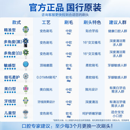 博朗 欧乐B(Oralb)EB25-3牙线效果型电动牙刷头,小巧圆头设计,灵活深入口腔,360°清洁不伤龈。蓝色显示性刷毛,可以提醒急事换刷头。适合欧乐B 产品2D/3D/DB4系列电动牙刷 。