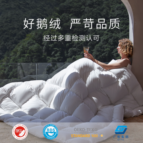 精选高寒地区白鹅脯部朵状绒毛,辅以高密防羽面料,更轻盈保暖,带来温暖舒适的睡眠体验。3D立体空气仓设计,羽绒分布均匀,避免线迹处绒少而造成高低不平现象,有效增加被子的保暖性和蓬松度。