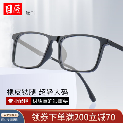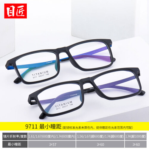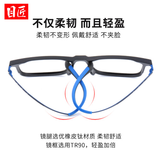 目匠 1.61变灰防蓝光镜片+9711 砂黑黑腿 经典两色设计,气质百搭耐看,加宽大码镜框,柔韧材质,让你摆脱拘束。不仅柔韧而且轻盈,柔韧不变形,佩戴舒适不夹脸。镜腿选优橡皮,钛材质柔韧舒适,镜框选用TR90,轻盈加倍。