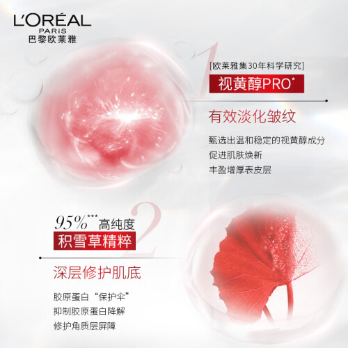 L'OREAL PARIS来自法国的彩妆护肤品牌,创立于1907年,是欧莱雅集团旗下大众化妆品牌之一,主要生产染发护发、彩妆及护肤产品。这款主打功效是促进肌肤新生,减少皱纹,紧致肌肤,适合熟龄肌肤使用。
