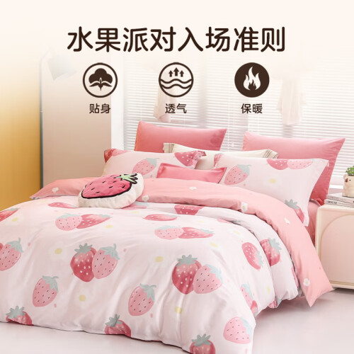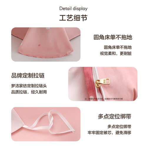 采用阳光充足,健康饱满的优质棉花,棉丝细长,洁白而富有弹性,带来舒适触感。优质印染,色彩靓丽,不易褪色,展现清新可爱的印花图案,印染方式更环保、更健康,不含对人体有害的物质,洗涤时不易褪色不易缩水,手感滑软,丝光质感。