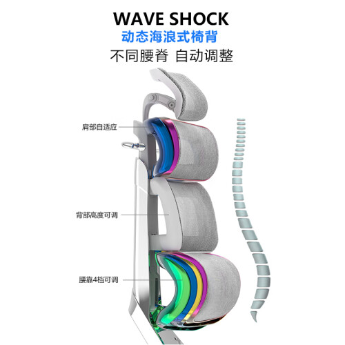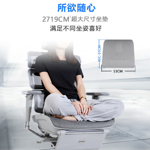 这款人体工学椅采用UltrAir超弹网面材质,矩阵式分区弹力,弹性提升100%、柔韧性提升60%;脊椎仿生设计,腰肩背分区支撑,2719CM超大尺寸+微后倾坐垫设计,能满足不同坐姿喜好的同时防止坐姿变形、坐的更稳。同步后仰系统135°+30°大角度,5档后仰锁定,3D合金骨架扶手,上下、前后、左右均可调节,更大更宽的一体式畅躺架,可满足不同身高体重的用户,也可以灵活满足不同使用坐姿需求。