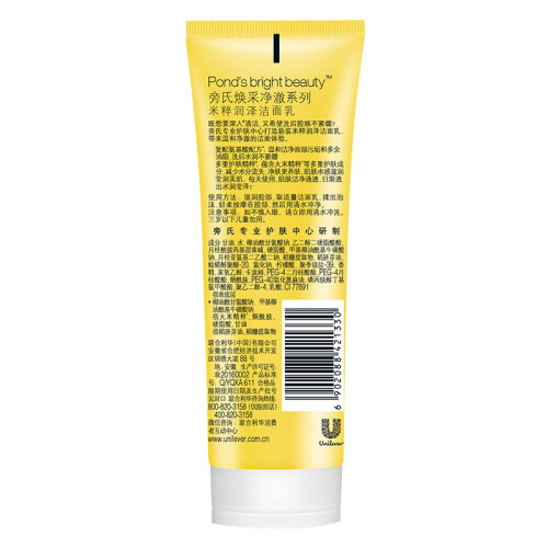 POND'S(旁氏)1864年诞生于美国,1987年被联合利华收购。1988年,旁氏品牌和她的旗舰产品——冷霜一同进入中国,旁氏在中国拥有多个的护肤产品,并拥有相应的洁肤产品。这款米粹润泽洁面乳,可以称为是高端氨基酸洁面们的平价替代品,以椰油酰基甘氨酸钠、月桂酰胺丙基甜菜碱、甲基椰油酰基牛磺酸钠为核心清洁体系,温和低刺激的同时,能产生足够清洁力的细腻泡沫,净化污垢、卸除淡妆毫无压力。洁面中还添加了烟酰胺、稻糠提取物和稻胚芽油,帮助保湿润泽肌肤,还具有淡化黑色素的美白功效。