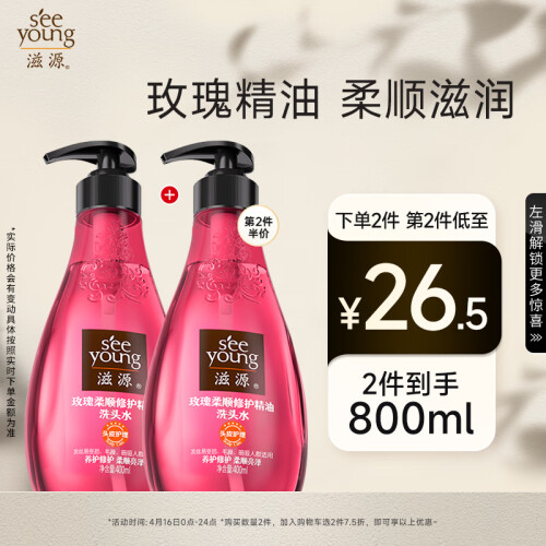 滋源推出的这款洗发水,适用中干性头皮、发质干枯受损和毛躁的人群。采用无硅油和无硫酸盐的配方,富含玫瑰精油和澳洲坚果油等多重植萃精油,可温和清洁头皮和发丝,滋润养护受损发质,改善头发干枯毛躁、暗哑无光等问题,令秀发柔顺亮泽。采用挤压泵的设计,方便取用。