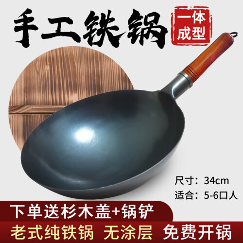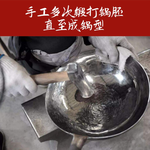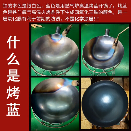 章丘铁锅,章丘铁锅厚度1.6mm左右,采用中国传统的打铁工艺,一锤一印打造出来。经过千多度高温火烤,三万多锤锻打,具有高密度,无涂层不易粘锅,炒菜香,更健康,无涂层,物理不粘锅,锅把手一体成型,结实耐用,铁锅通过锻打,改变铁分子排列机构增加表面密度,通过油脂渗入铁分子内部,实现物理不粘效果,导热快,炒菜香,人工翻炒工艺,锅体厚实,迅速升温,耐高温不变形,能品尝到熟悉的柴火香。
