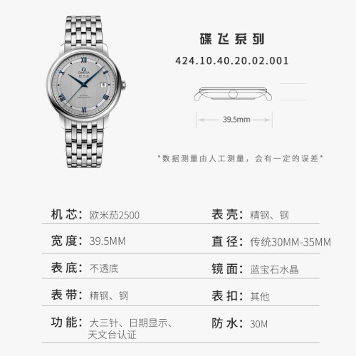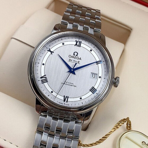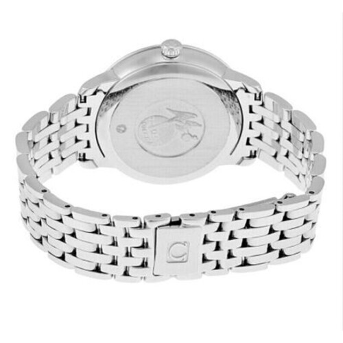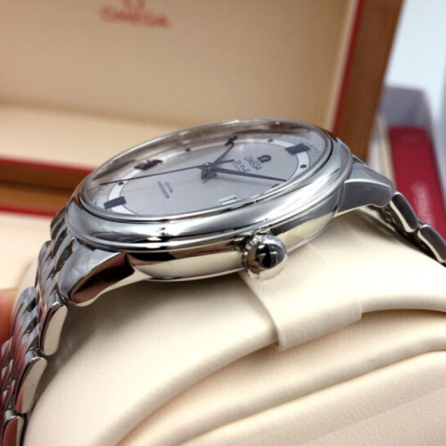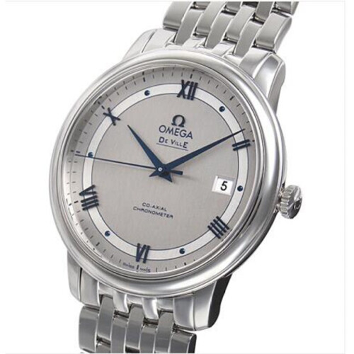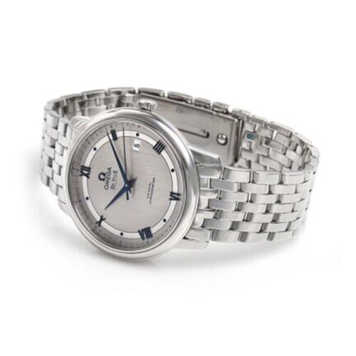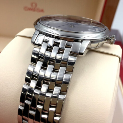 欧米茄推出的这款碟飞系列,选用银色表盘,罗马数字与条钉刻度搭配蓝色指针,加以独立日期显示,方便你查看时间。不锈钢表带搭配三折扣,职场气息十足,佩戴舒适且方便脱戴。蓝宝石水晶玻璃表镜设计,防刮耐磨。具有生活防水功能,满足您的日常佩戴需求。