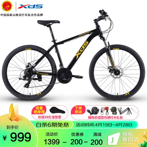 XDS 喜德盛 山地自行车 黑客350,选用X6铝合金车架,刚性高,禧玛诺21速变速系统,定位精准,硬度高,变速过程中操作更快速。专业山地车牙盘,齿盘使用强化钢,刚性强,与链条更加吻合,骑行不泄力牙盘具有护盘设计,有效防止裤脚卷入链轮中的危险,确保安心出行。机械碟利,刹车强劲有力,制动效果好,能够快速刹停车辆。XDS减震前叉,强劲回弹力,有良好的的避震效果,适合复杂路况。