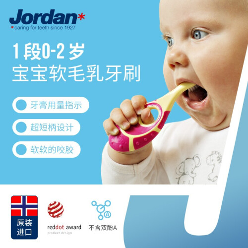 Jordan 儿童软毛护龈牙刷专为宝宝设计的柔软杜邦刷毛+小巧刷头,呵护宝宝稚嫩牙齿,大环形短手柄避免伤害宝宝喉咙,手柄还可当磨牙棒。