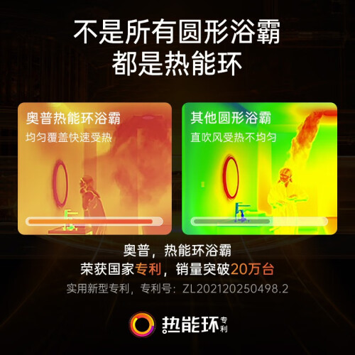 360°激活空气,处处温暖。热能环的加热面积是同功率直吹浴霸的2倍,瞬间激活空气,实现360环抱暖风,立体升温。在飓风增压下,吹出360°立体风圈,源源不断的形成热能矩阵向外均匀扩散,让卫浴空间处处温暖。