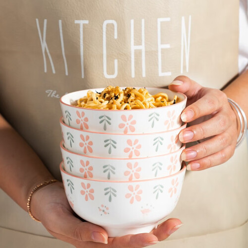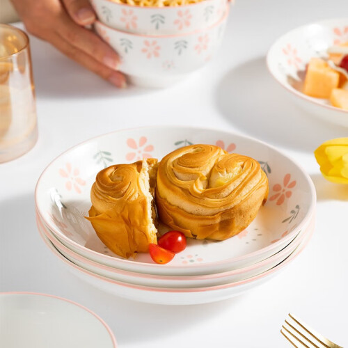 一日三餐看起来很普通,但是确实承载了时光里很多的重要回忆,这款餐具是简约的小花的图案设计,粉线描边,整体特别清新,釉下彩的工艺,全家人都可以放心使用。