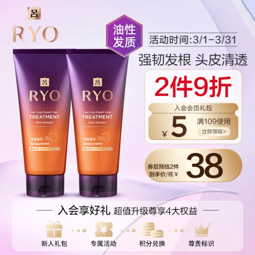 吕是韩国爱茉莉集团的中高端洗护品牌,所有洗护系列均以汉方为基础,具有防脱发功效。这款密集强韧精华发膜,富含GinsenEX高丽人参精华,有效滋养头皮,令发丝强韧丰盈,头皮兼用,适合油性头皮~