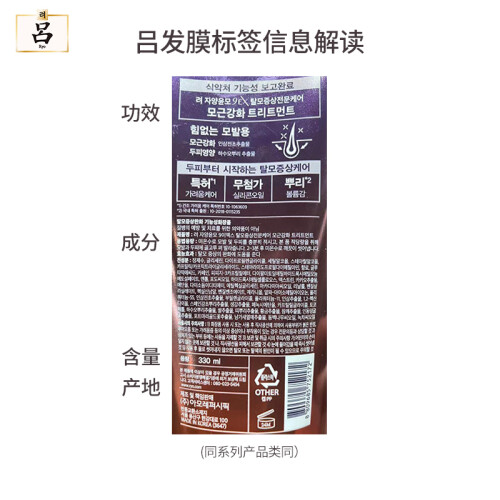 吕是韩国爱茉莉集团的中高端洗护品牌,所有洗护系列均以汉方为基础,具有防脱发功效。这款固发防脱发膜,采用多种韩方植物提取成分,能够帮助缓解脱发现象,同时对发丝起到一定的顺滑效果,减少不必要的摩擦拉扯。