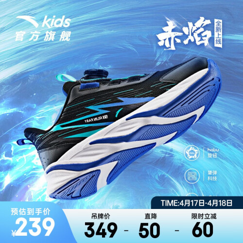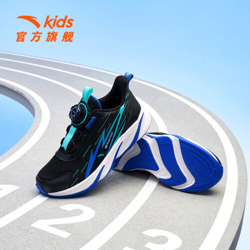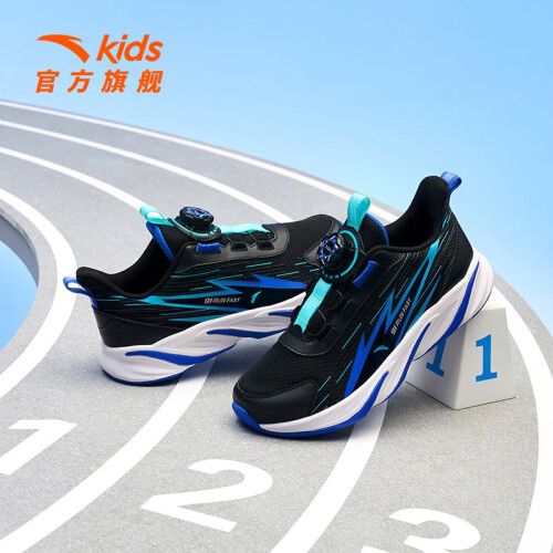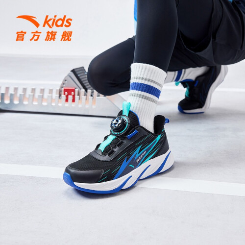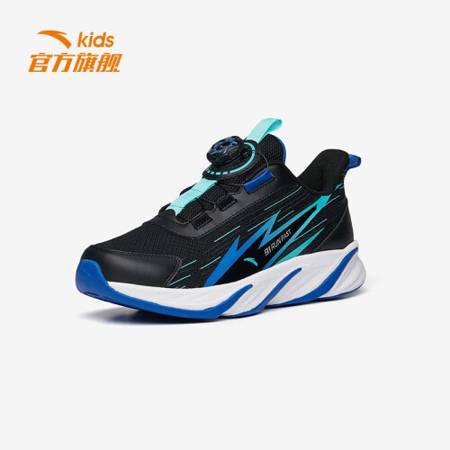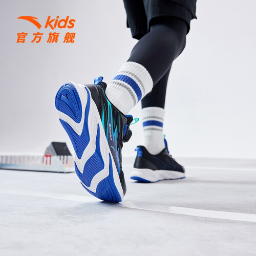 ANTA 安踏 儿童运动鞋,防撞鞋头设计,好穿不挤脚,犟弹科技材质,回弹度提升约33%,柔软度提升约20%,鞋身炫彩造型,和大底火焰式TPU造型相呼应。