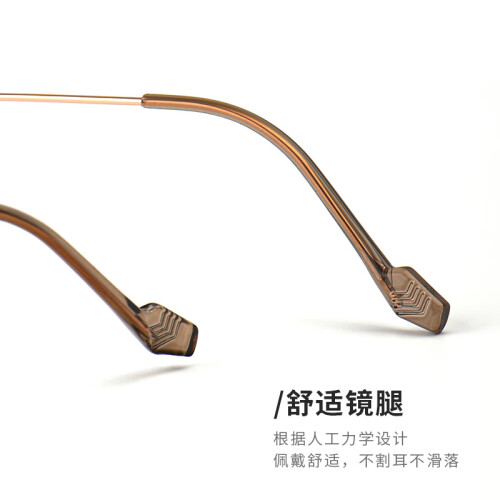 镜框柔韧有弹性,钛合金镜架,佩戴轻松自在。人性化设计,不压迫鼻梁,不压鼻,佩戴更稳更舒适舒适。镶嵌处的装饰都是加固工艺,牢固不掉落,双梁的设计,框型简单大气。舒适镜腿,根据人工力学设计。