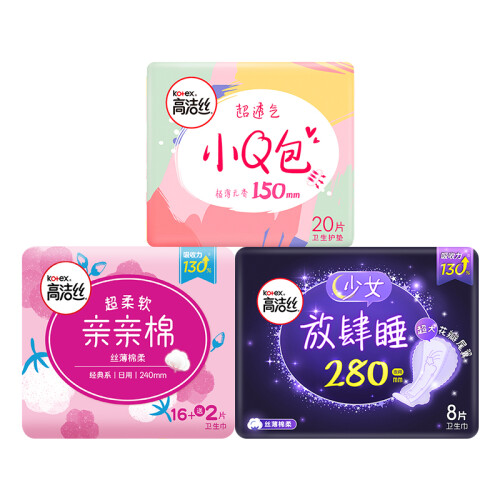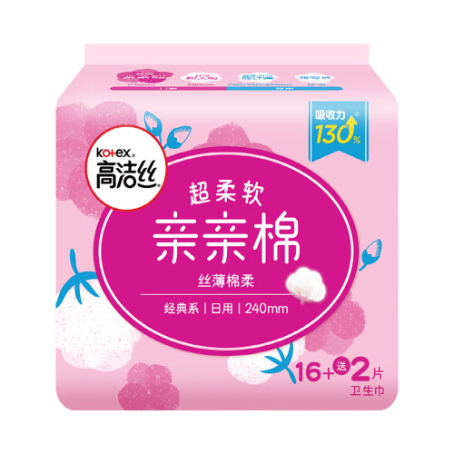 这款kotex 高洁丝 棉柔丝薄放肆睡卫生巾,采用绒毛浆、无纺布、PE膜和高分子吸收树脂的组合,能够在轻薄无负担的同时具有快速吸收的能力。主打贴体防漏,超薄巾身,轻薄透气,柔软面层舒适;尾部采用特大花瓣式包裹设计,安全不易漏,享受全包裹的安全感,贴身面层添加维E面层,呵护娇嫩肌肤,带来无摩擦感的柔滑体验。