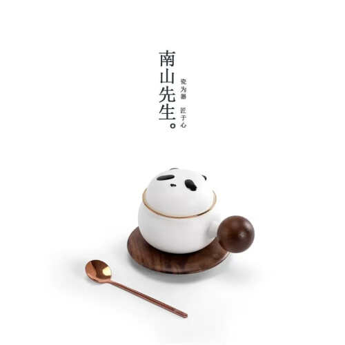 轻简禅风白,空间皆百搭,熊猫陶瓷茶咖杯,搭配胡桃木点缀,温暖且朴实,成套搭配,居家小憩、办公品茗皆适用,赠人礼遇也出彩。