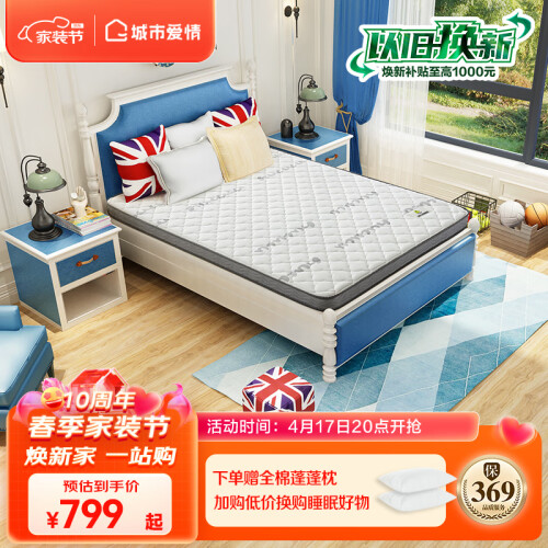 双重透气结构,舒心安睡不闷热,透气针织面料搭配多气孔围边,保持床垫内自然透风,及时排散睡眠时的人体余热与潮气,睡感更干爽舒适,久睡不黏腻。