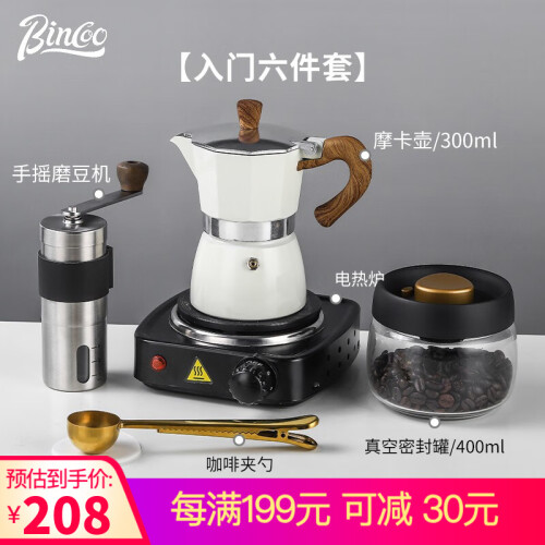 当前的位置: 首页 > 今日值得买 > Bincoo手冲咖啡壶套装咖啡豆研磨机家用咖啡机磨豆机手冲壶咖啡具套装 【超值推荐】入门摩卡咖啡6件套