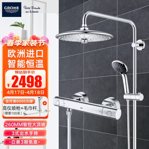 当前的位置: 首页 > 今日值得买 > 高仪(GROHE)260MM大顶喷花洒智能恒温淋浴花洒套装家用卫浴洗澡手持套装