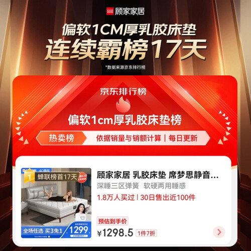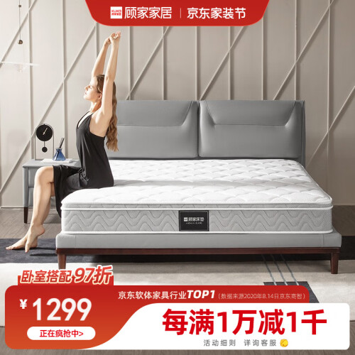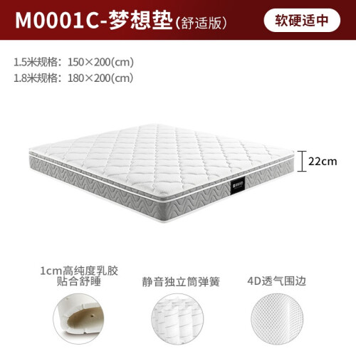 顾家梦想垫采用2cm加厚乳胶,独立筒袋装弹簧,睡感舒适。约95%高纯度乳胶,富含大量橡胶蛋白,能有效抑制螨虫滋生,抑菌防过敏。支立簧边框加固,不易塌陷变形。还选用了0胶水椰棕,优于国标2倍以上。乳胶蜂窝状结构+床垫四周4D透围边,保持床垫内部空气对流,还你干爽舒适的睡眠环境。