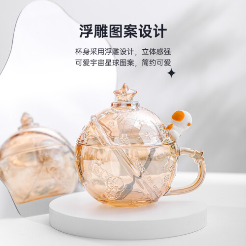 杯身采用浮雕图案设计,立体感强,可爱宇宙星球图案,简约可爱;中国航天·十二天宫官方授权,正版联名;舒适握把,端拿方便,加厚杯底,坚固耐用;容量:320ml。