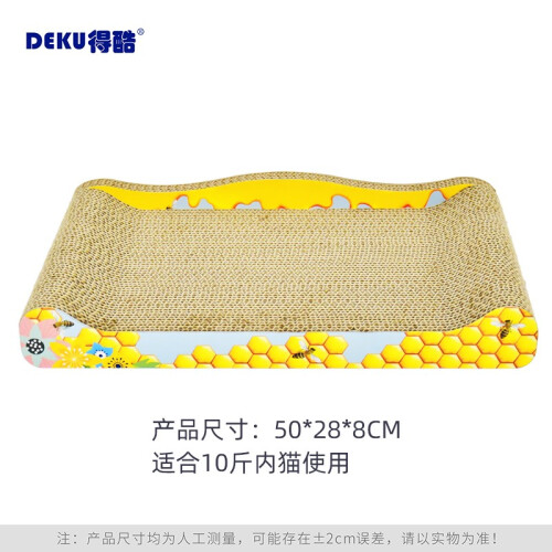 得酷 瓦楞纸猫抓板 舒适的睡眠从床开始,高密度加厚加密瓦楞纸,耐磨耐抓,冬暖夏凉经久耐用;猫咪总是喜欢把头架在抓板处休息,理想的倾斜角度,135°的舒适角度给猫咪更好的使用感。