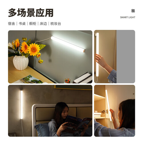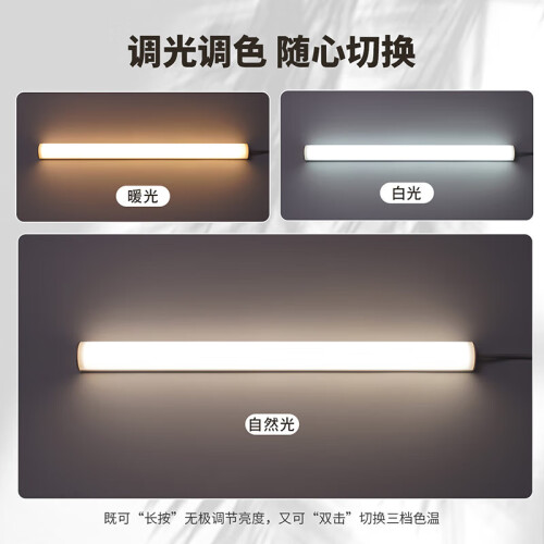 既可“长按”无极调节亮度,又可“双击”切换三档色温。USB接口1.5米超长线,随时随地轻松便携,实现用光自由。防眩纹理设计,减少眩光不适。高阻燃V0级别,更安全更安心。均匀度光学扩散设计。