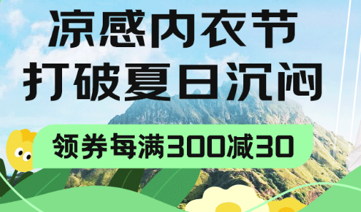 京东凉感内衣节,优质好物为你推荐!热销好物,惊喜多多不容错过!活动设有超值补贴、甄选品牌、睡衣家居服、性感文胸、舒适内裤等分类专区,即刻参与活动,领券满300减30,低至9.9元,更有包邮、退换运费险等基础福利可以享受~更多好物等你来选购,感兴趣的聚友不要错过~