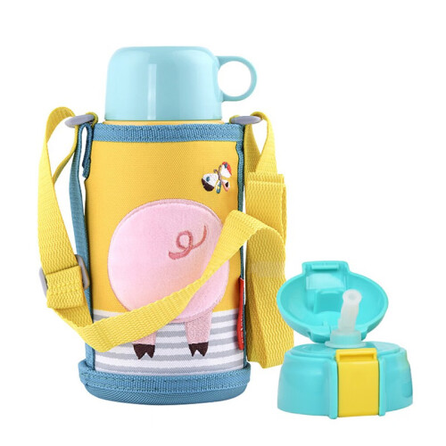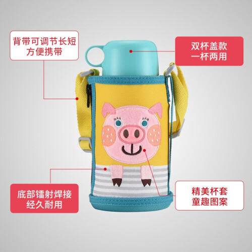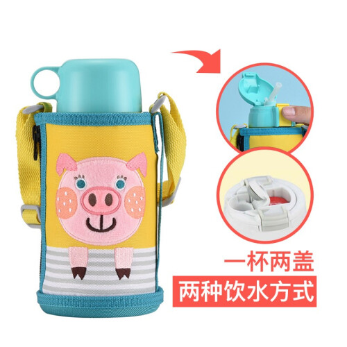 虎牌儿童保温杯保,一键式按钮,中栓采用一键式按钮设计,按下可倒出水至杯盖里,密闭不漏水。中栓可拆解,中栓可拆卸分解清洗,宝宝使用更放心。内外有螺纹,杯子内外都有螺纹,不易脏污,杯盖吸管两用杯。硅胶吸嘴,硅胶材质的吸嘴非常柔软,保护宝宝娇嫩的小嘴。附精美便携袋,外出方便携袋,背带可伸缩调节长度,游玩更省心。