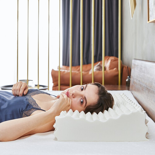 枕型设计,符合人体工学,45D密度,软硬适中,强力支撑,三重波浪符合人体工学,适应不同睡眠需求~