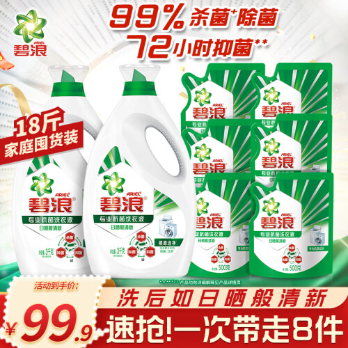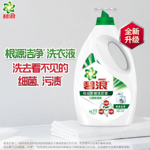 碧浪是全球日化龙头宝洁公司旗下著名洗涤品牌,深受消费者喜爱,自进入中国市场以来,碧浪一直不断创新洁净技术,力图为消费者带来洁净如新的洗涤体验。此款洗衣液集合除菌-杀菌-抑菌为一体,三效合一,有效洗除并杀死织物表面、洗衣机中的细菌,经权威机构检测,抗菌率高达99%;采取日本全新技术,抑菌留香,专为机洗设计,超强洁净,有效对抗多种污渍,即使在潮湿或者封闭的环境中晾晒,也能轻松拥有日晒般清新。同时采用个性化瓶嘴设计,便于用量精确控制。