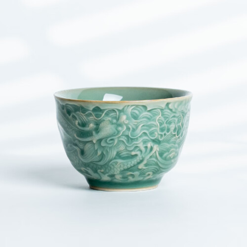 龙凤呈祥融入中式传统元素,龙凤图案祥寓意祥瑞圆满。触之立体,胚体浮雕图案,自带流动感,线条繁而不乱。容量100ml大口喝茶大容量品饮,唇感细腻。柔润拙朴,适茶性强,不会吸附茶味。内壁匀净,易观茶色。