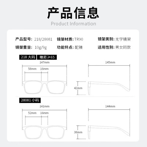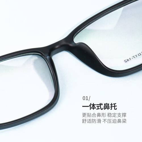 这款眼镜采用TR材质,轻/薄/柔韧/抗腐蚀,超轻10g,轻便不压脸,长久佩戴也不觉疲累。镜框加宽加大设计,轻盈舒适,兼备质感与触感的框材。一体式鼻托,更贴合高鼻梁聚友。