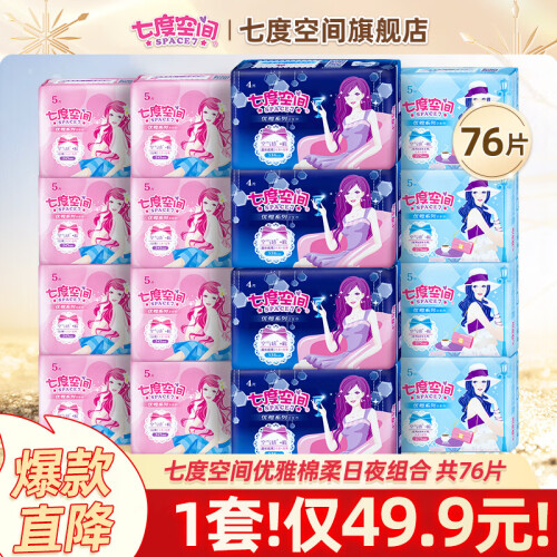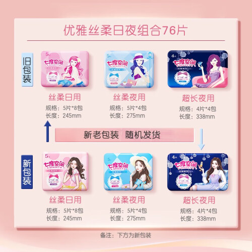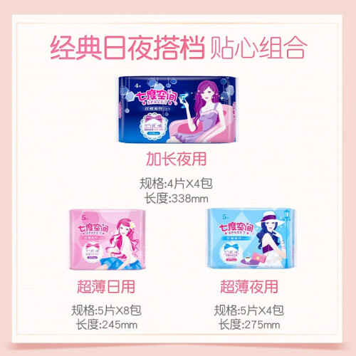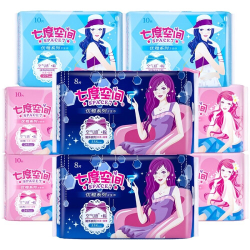 七度空间来自老牌恒安集团,该品牌的卫生巾产品目前分为两个系列,分别为优雅系列和少女系列,这些系列的卫生巾采用弧形设计,既贴身又不厚重,让女生在又安全感的同时又不会因卫生巾过于厚重而不自在,高分子吸收材质的使用,让其具备了优秀的吸收能力,受压后也不会回渗,使用起来感觉更清爽。这款优雅系列的卫生巾组合,245mm*40片+275mm*20片+338mm*16片,采用纯棉材质,采用凹点透气呼吸膜,空气感舒适,表层舒适柔软,超强吸收力,日用轻松携带出门,夜用伴您安然入睡。