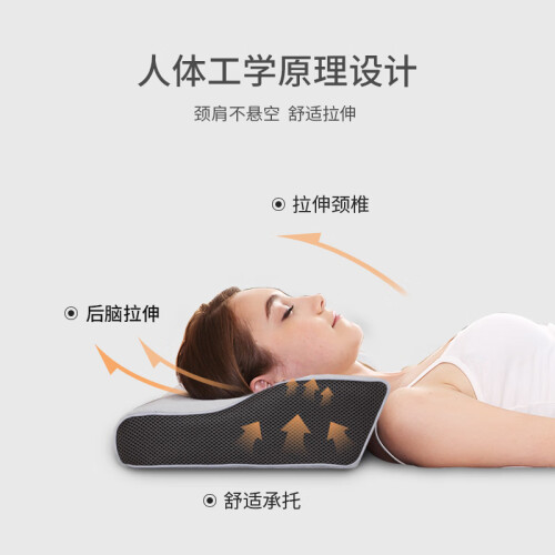 头部承托,零压力记忆绵,贴合头颈,不易塌陷,亲肤透气,抑菌防螨。头颈承托后伸设计,使睡眠呼吸更加顺畅。