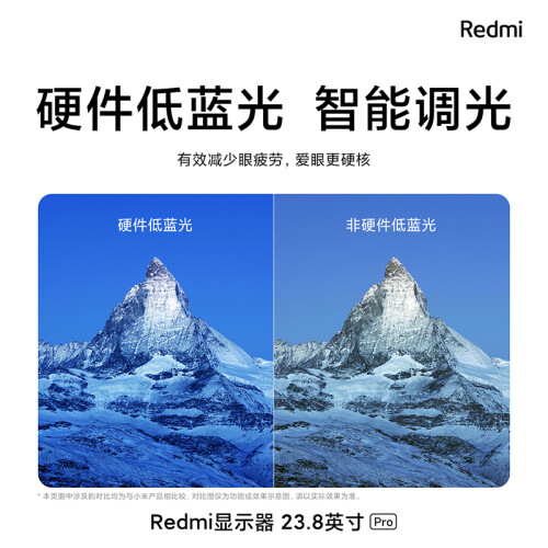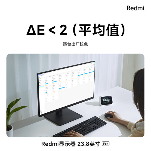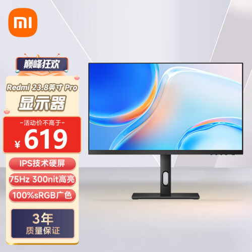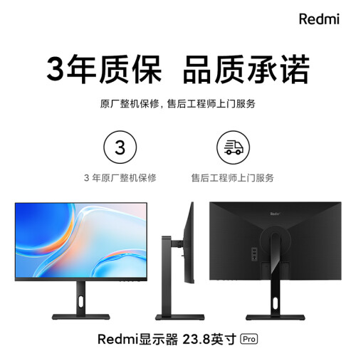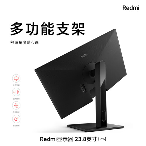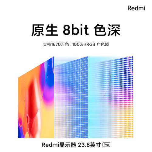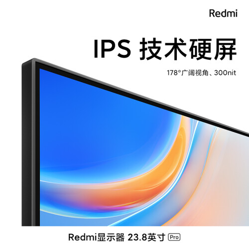 红米 MNT238NFS 23.8英寸IPS显示器采用IPS技术硬屏,178°广阔视角,300nit亮度,原生8bit色深,支持1670万色,100% sRGB广色域,逐台出厂校色,硬件低蓝光、智能调光,丰富接口,自带HUB,多设备轻松连接,多功能支架,方向随心调节。