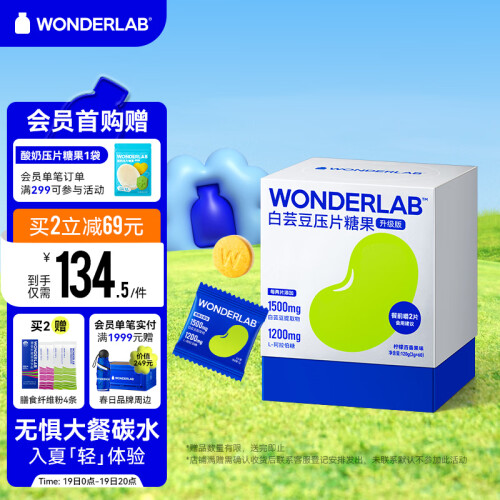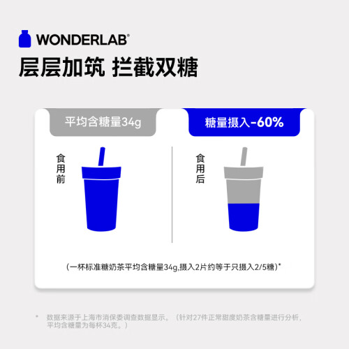 WONDERLAB是由一群营养美妆界的极客创立的代餐品牌,以科学态度大胆探索美丽时尚前沿,为年轻的爱美精英研创新营养美学。隶属于深圳精准健康食物科技有限公司。本产品含有:白芸豆提取物,拦截66%的淀粉,桑叶提取物,拦截双糖。马铃薯提取物使得饱腹感明显提升。海藻粉拦截脂肪,绿咖啡粉助力脂肪分解。浓缩成分,一撕即食。建议餐前半小时,每次2片咀嚼食用,每日食用不超过6片。