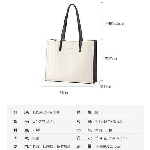 复古时髦撞色,流畅的线条搭配,无需过多的装饰,展现时尚优雅。选用优质面料,柔软舒适,有镀膜层,不易产生划痕。缜密车缝线,美观耐用,底部带防滑垫,保护包包磨损,延长使用寿命。合理的内部结构,分工明确的人性化设计,方便使用,包身精致,可以随心放置手机、眼镜、钱包等物品。尺寸:34*12*27厘米。