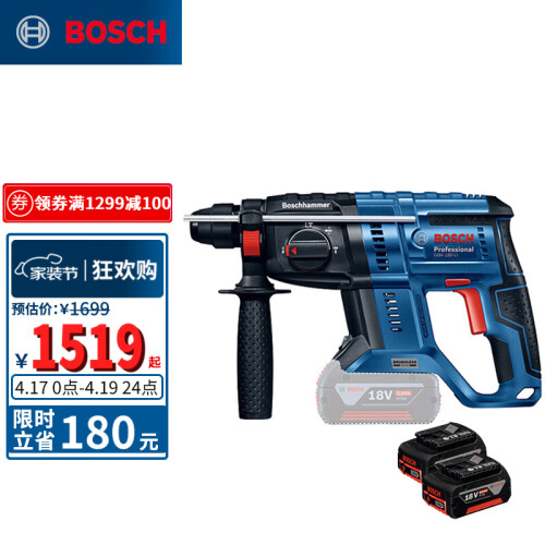 当前的位置: 首页 > 今日值得买 > 博世(BOSCH)GBH 180-LI 18V锂电无刷多功能充电式电锤电钻冲击钻 5.0Ah电池*2