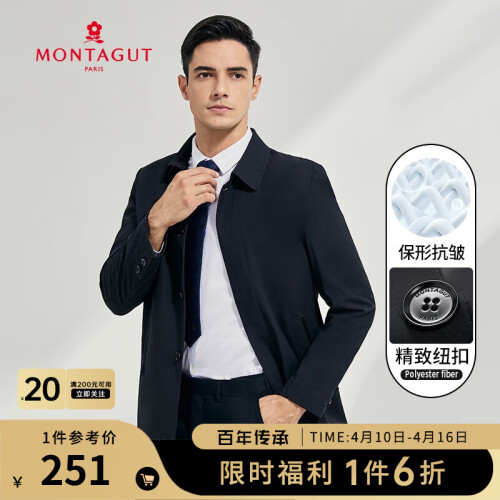 MONTAGUT 梦特娇男式商务休闲夹克,甄选优质面料,穿着柔软舒适,不易变形,经典翻领,时尚稳重,立体剪裁,打造优美领型。