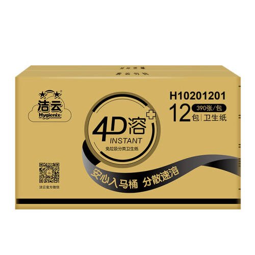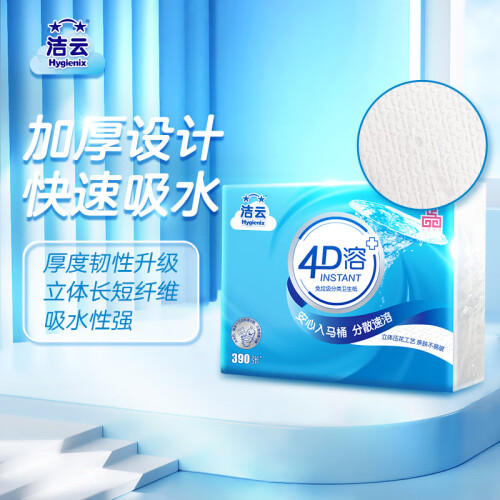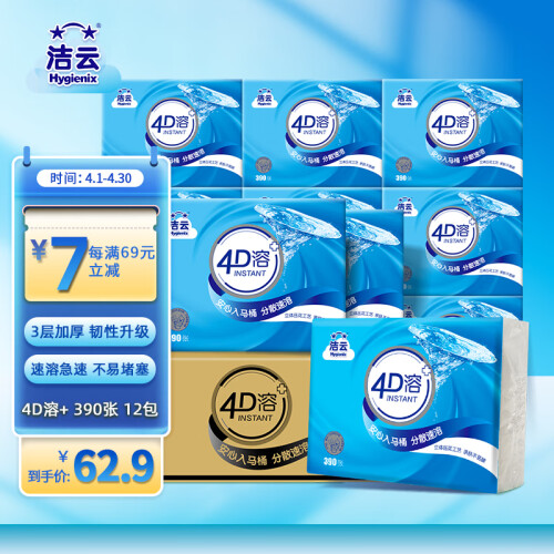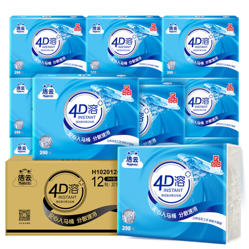 当前的位置: 首页 > 今日值得买 > 洁云平板纸 4D溶+ 速溶压花卫生纸 390张-12包装 厕纸 替代卷纸 整箱