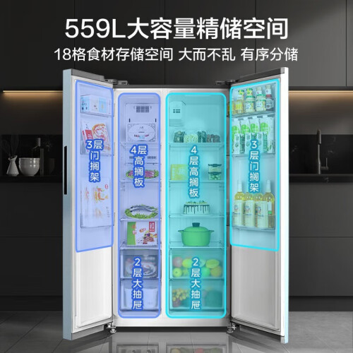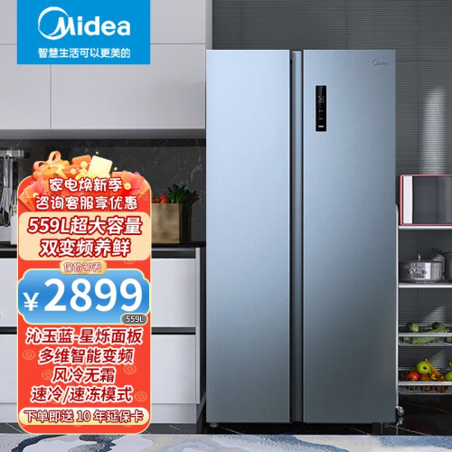 当前的位置: 首页 > 今日值得买 > 美的(Midea)559升对开门双开门风冷无霜双变频大容量净味保鲜节能省电纤薄智能客厅90度开门家用电冰箱 对开门BCD-559WKPM(E)沁玉蓝-星烁