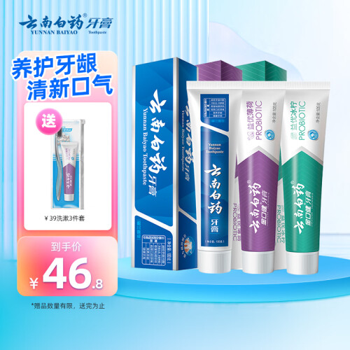 当前的位置: 首页 > 今日值得买 > 云南白药牙膏益生菌清新口气牙膏家庭装 【尝鲜装】3支牙膏(共310g)