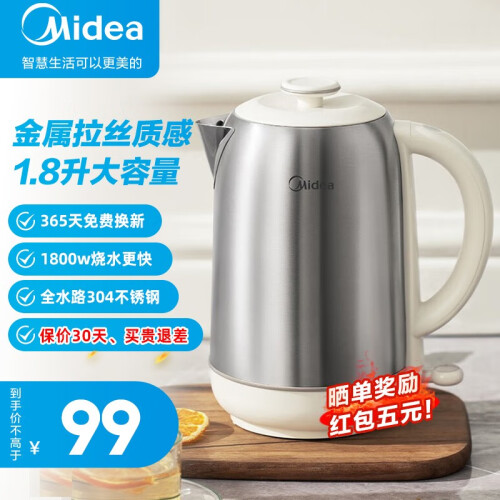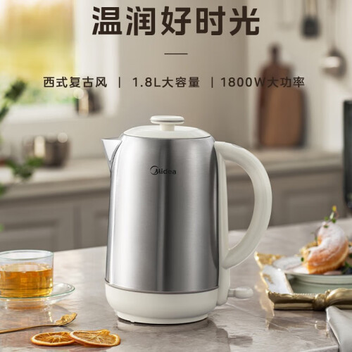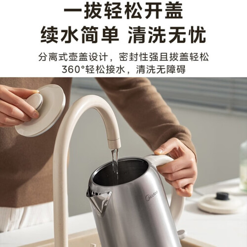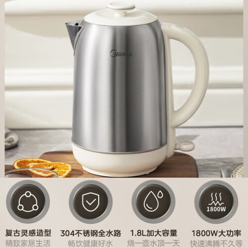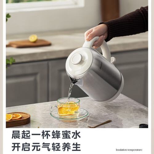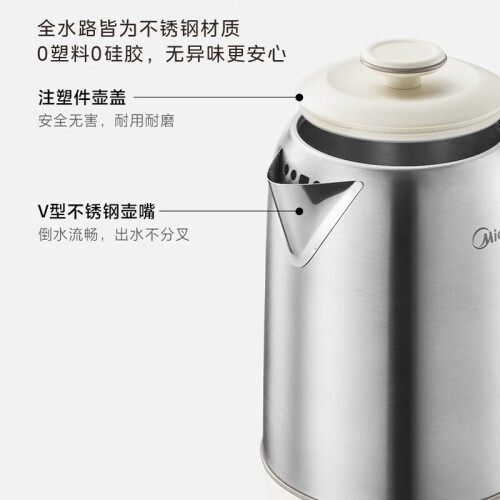 Midea 美的 MK-SH01-S 电水壶 全钢水路,饮水安全无异味,全不锈钢水路,0塑料0硅胶,无异味更安全,大功率,烧水更快,1800W大功率,缩短加热时间快速沸腾每一滴水。